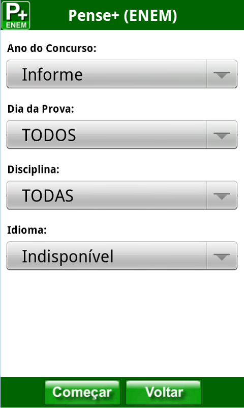 Com o Pense+ (ENEM) você pode fazer um simulado com questões anteriores do Exame. No total, são mais de 1200 questões. É possível montar seu simulado por área, ano ou dia da prova. Além disso, você pode escolher uma opção de língua estrangeira. É muito bom para ter uma noção do nível de dificuldade da avaliação e o tempo gasto. O Aplicativo pode ser baixado através desse link aqui.